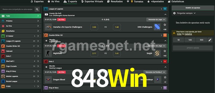 A aposta 848Win oferece aos jogadores a experiência mais conveniente de apostas em eSports!